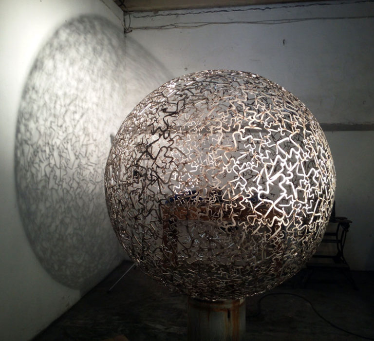 Parmi les œuvres réalisées dans l’Atelier, des sphères en filigrane de différents diamètres, la plus importante étant de 180 cm de diamètre.